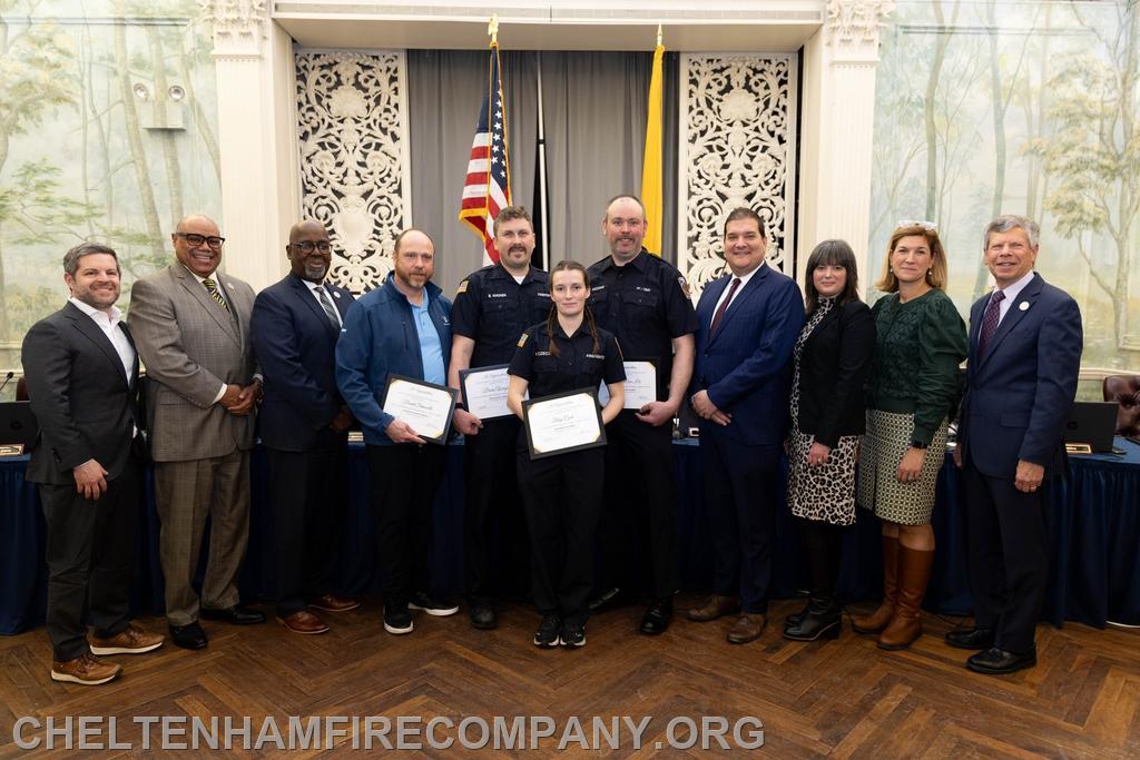 - James McCann, IV, 20 years with the Cheltenham Fire Company - James Salanik, 20 years with the Cheltenham Fire Company - Peter Stanley, 20 years with the Cheltenham Fire Company - Brian Wagner, 20 years with the Cheltenham Fire Company - Riley Czech, 10 years with the Cheltenham Fire Company - Anthony Evans, 10 years with the Cheltenham Fire Company - David Simonetti, 10 years on the Industrial Development Authority
